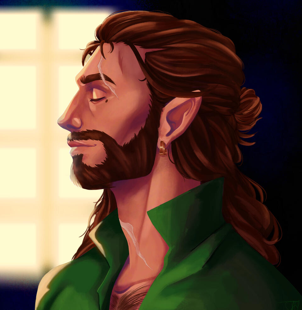 Micah grew up in a noble household in the city of Aalyvae, enjoying the life of a middle child and spending his days passing the time doing whatever he liked. He often accompanied his parents and older sister, Qirya when going to court functions. Though he didn't enjoy them, they were important in showing him how the upper court worked and how nobles tended to mask their words behind metaphors and long stories. He spent much of his time at parties and at formal court either hanging on to his siblings or spending time with Asta, his best friend. He met Asta Kassab, the prince of the city, when they were both very young and became fast friends. He also spent a good amount of time training with his uncle and mentor, Fen, to become a member of the city's guard. Though his family historically was heavily involved in fae hunting and even hoarded a large amount of artifacts and tomes speaking on the practice, Fen largely tried to keep Micah protected from it, and refused to speak on it besides giving him stories when he was exceptionally excited. Instead, Fen gently tried to steer Micah to the topic of monster hunting, which he became enamored with, trying to learn as much as he could about monsters (and fae) as he could.Eventually, he grew to be a bright young man that was truly interested in learning and knowing more about the world. One day, when he was out getting drunk, his family's home was infiltrated by people hired by Sophia, massacring his family and destroying his home. He came back to a broken home and the sole inheritor to the title. After spending a week catatonic, Micah took his family's ancestral sword and buried it beneath the staggering tree housed in their gardens, before leaving the city and traveling as a wanderer, carrying the whip that he was still training with when he left. After some time wandering in a stupor, he happened upon a druid named Xisi, a satyr that taught him in the ways of druidship. Her age was catching up to her, however, and in her dying breath she bequeathed to Micah an opal-esque stone that upon contact, seared a tattoo into his back and shattered into dust. Now Micah seeks to know what this tattoo means... and why it looks strangely like a map.